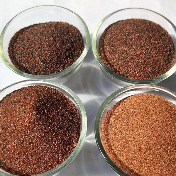 Theo màu sắc, có cát garnet đỏ, cát garnet hồng, cát garnet nâu và cát garnet xanh.